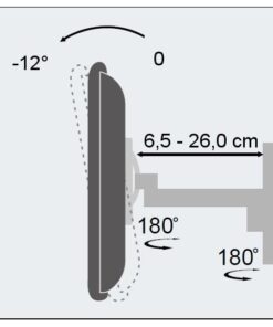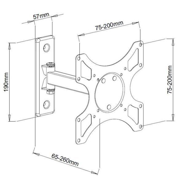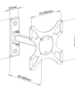 • Staffa universale per fissare una TV LED /LCD al muro; facile e veloce da installare, è ideale per la casa, l’ufficio e le applicazioni commercialiCaratteristiche• Staffa adatta per TV LED LCD 19-37’• Supporta VESA 75×75, 100×100, 200×100, 200×200 mm • Massimo peso supportato: 25 kg• Braccio a 2 snodi con massima estensione di 260 mmSpecifiche• Inclinazione da 0 a -12°• Orientamento orizzontale: 180°• Distanza minima dal muro: 65 mm• Distanza massima dal muro: 260 mm• Dimensioni: 190 x 57 mm placca a muro; 65 – 260 mm braccio, 1.3kg• Colore: biancoLa confezione include• Supporto a muro per TV LED LCD• Accessori di fissaggio (viti, tasselli…) e istruzioni per l’installazione