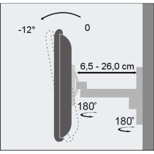 • Staffa universale per fissare una TV LED /LCD al muro; facile e veloce da installare, è ideale per la casa, l’ufficio e le applicazioni commercialiCaratteristiche• Staffa adatta per TV LED LCD 19-37’• Supporta VESA 75×75, 100×100, 200×100, 200×200 mm • Massimo peso supportato: 25 kg• Braccio a 2 snodi con massima estensione di 260 mmSpecifiche• Inclinazione da 0 a -12°• Orientamento orizzontale: 180°• Distanza minima dal muro: 65 mm• Distanza massima dal muro: 260 mm• Dimensioni: 190 x 57 mm placca a muro; 65 – 260 mm braccio, 1.3kg• Colore: neroLa confezione include• Supporto a muro per TV LED LCD• Accessori di fissaggio (viti, tasselli…) e istruzioni per l’installazione