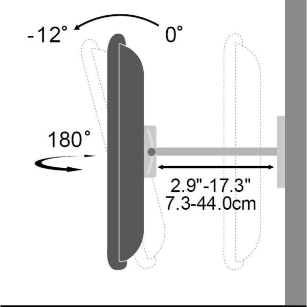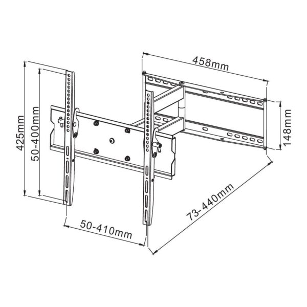 • Staffa universale per fissare una TV LED /LCD oppure un monitor al muro; facile e veloce da installare, è ideale per la casa, l’ufficio e le applicazioni commercialiCaratteristiche• Staffa adatta per TV LED LCD 23-55’• Supporto VESA regolabile fino 400 x 400 mm • Massimo peso supportato: 50 kg• Braccio a 3 snodi con massima estensione di 440 mmSpecifiche• Inclinazione da 0° a -12°• Orientamento orizzontale: 180°• Distanza dal muro: minima 73 mm; massima 440 mm• Include bolla di livello• Permette il montaggio ad angolo • Dimensioni: 458 x 425 x (73-440) mm, 5.7kg• Colore: neroLa confezione include• Supporto a muro per TV LED LCD• Accessori di fissaggio (viti, tasselli…) e istruzioni per l’installazione