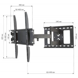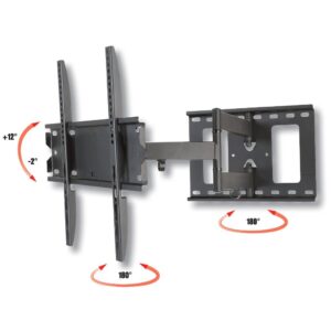 • Staffa universale per fissare una TV e Monitor LED /LCD al muro; facile e veloce da installare, è ideale per la casa, l’ufficio e le applicazioni commercialiCaratteristiche• Staffa adatta per TV e Monitor LED LCD da 32 a 55 pollici• Supporta standard VESA fino 400 x 400 mm• Massimo peso supportato: 50 kg• Massima estensione 50 cmSpecifiche• Rotazione orizzontale: +/- 90º• Inclinazione: da -2° a +12°• Include sistema di aggiustamento di livello orizzonatale• Integra sistema di gestione del cavi• Distanza dal muro 63 mm• Include bolla di livello• Colore: neroLa confezione include• Supporto a muro per TV LED LCD• Accessori di fissaggio (viti, tasselli…) e istruzioni per l’installazione