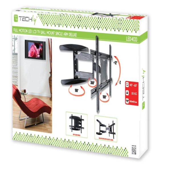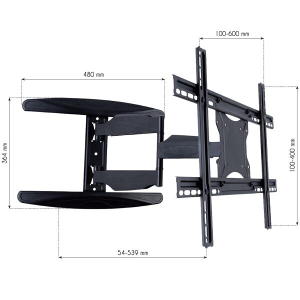 Molti supporti per TV LED / LCD si possono inclinare in avanti e indietro o verso destra o sinistra, ma sono piuttosto ingombranti e non si possono piegare in modo compatto, il che rende difficile posizionare il televisore vicino alla parete. ICA-PLB 171L non ha questo problema: il suo ingombro minimo misura solo 54 mm di distanza dal muro! Il suo design ultra slim la rende infatti maneggevole e pratica da posizionare, ma allo stesso tempo è dotata di una struttura robusta in grado di supportare monitor fino a 35 kg di peso.• Staffa dal design compatto, ideale per TV sottili• Nuovo sistema di inclinazione che permette una regolazione dell’angolo di -2° a +12°• Elementi decorativi sui bracci che oltre a migliorare la gestione dei cavi donano un piacevole aspettoCaratteristiche• Staffa a profilo ultra slim adatta per TV LED LCD 40-65’• Supporta VESA fino a 600×400 mm • Massimo peso supportato: 35 kg• Braccio a punti di regolazione orizzontale con massima estensione di 539 mmSpecifiche• Inclinazione da -2° a +12°• Orientamento orizzontale: 180°• Distanza minima dal muro: 54 mm• Distanza massima dal muro: 539 mm• Dimensioni: 480 x 364 x (54-539) mm• Bolla di livello inclusa • Colore: neroContenuto della confezione• Supporto TV da muro• Materiale di montaggio• Bolla di livello• Manuale d’istruzioni