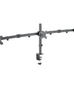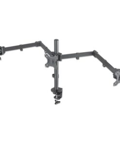 • Conforme agli standard VESA – Supporta in modo sicuro tre monitor LCD da 13′ a 27’• Posiziona i monitor sollevati dal piano della scrivania incrementando lo spazio operativo, migliorando la visibilità e riducendo il disordine• Bracci a doppia connessione con regolazioni separate dell’inclinazione di ± 45°, della rotazione di ± 180° e dell’altezza• Palo in acciaio con robusto morsetto di fissaggio• Placche VESA rimovibili che rendono l’attacco del monitor più rapido e semplice• Facile regolazione dell’orientamento del monitor sia lateralmente che in altezza (monitor centrale regolazioni limitate)• Ideale per ufficio, studio, applicazioni di rete IT e applicazioni di sicurezza• Si installa facilmente su qualsiasi scrivania o su qualsiasi superficie – non è necessario praticare alcun foroInformazioni generali• Supporta monitor conformi VESA 75 x 75 / 100 x 100• Peso supportato: fino a 7 kg per ciascun attacco • Si installa su superfici orizzontali da 10 a 85 mm di spessoreDimensioni• Altezza (palo): 443 mm• Diametro (palo): 35 mm• Lunghezza braccio (raggio): 658 mm• Larghezza braccio (estesa): 1316 mmContenuto della confezione• Supporto per monitor con attacco centrale e doppio braccio regolabile • Clip passacavi e tappi di rifinitura• Morsetto a C con vite• Viti di fissaggio e installazione dei monitor• Ferramenta per l’installazione con istruzioni e chiavi a brugola