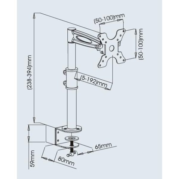 • Supporto da scrivania ideale per sollevare il monitor dal piano di lavoro incrementando lo spazio operativo e riducendo il disordine; ottimizza l’ergonomia permettendo di regolare l’inclinazione, l’altezza, la rotazione per individuare la migliore posizione di visibilità dello schermo• Facilmente installabile, è l’ideale per la casa, l’ufficio e per altre particolari applicazioni – non è necessario praticare alcun foroCaratteristiche• Supporto da scrivania per monitor 13-27’• Supporta VESA 75×75 e 100×100 mm • Massimo peso supportato: 8 kg• Altezza regolabile da 238 a 394 mm• Braccio medio inclinabileSpecifiche• Inclinazione +/-12°• Orientamento orizzontale: 360°• Si installa su superfici orizzontali con uno spessore di 5 cm• Dimensioni: 65 x (238-394) x 80 mm, 1.7kg• Colore: neroLa confezione include• Supporto da scrivania per Monitor• Accessori di fissaggio e istruzioni per l’installazione