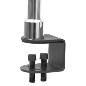 • Permette di tenere un monitor sollevato dal piano della scrivania incrementando lo spazio operativo• Braccio con doppio giunto ottimizza la visione del monitor e l’ergonomicità grazie all’inclinazione a ±15°, la rotazione a 180° e la regolazione dell’altezza• Costruzione in resistente acciaio e alluminio con solido morsetto per fissarlo alla scrivania o ad una superficie orizzontale• Installazione semplice ideale per la casa, l’ufficio e le applicazioni commerciali – non è necessario forare• Conforme agli standard VESA – adatto per monitor da 13′ a 27’• Peso supportato: monitor fino a 15 kg• Supporta (1) monitor conforme VESA 75 x 75, 100 x 100 mm con dimensioni da 13” a 27”• Altezza del palo di supporto: 400 mm • Estensione: da 5 a 439 mm • Peso unitario: 2.8 kgContenuto della confezione• Supporto per monitor LCD con braccio rotante con doppio giunto• Hardware e istruzioni per l’installazione