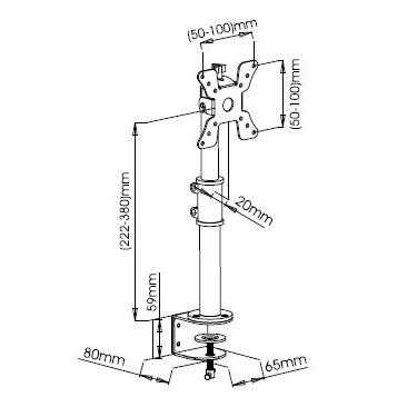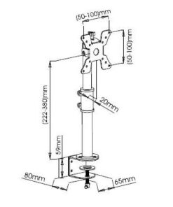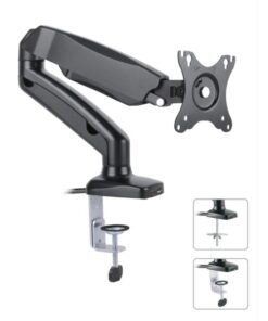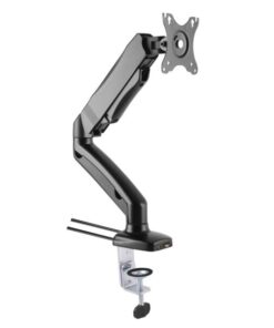 • Supporto da scrivania ideale per sollevare il monitor dal piano di lavoro incrementando lo spazio operativo e riducendo il disordine; ottimizza l’ergonomia permettendo di regolare l’inclinazione, l’altezza, la rotazione per individuare la migliore posizione di visibilità dello schermo• Facilmente installabile, è l’ideale per la casa, l’ufficio e per altre particolari applicazioni – non è necessario praticare alcun foroCaratteristiche• Supporto da scrivania per monitor 13-30’• Supporta VESA 75×75 e 100×100 mm • Massimo peso supportato: 15 kg• Altezza regolabile da 222 a 380 mmSpecifiche• Inclinazione +/-12°• Orientamento orizzontale: 360°• Si installa su superfici orizzontali con uno spessore di 5 cm• Dimensioni: 65 x (222-380) x 80 mm, 1.5kg• Colore: neroLa confezione include• Supporto da scrivania per Monitor• Accessori di fissaggio e istruzioni per l’installazione
