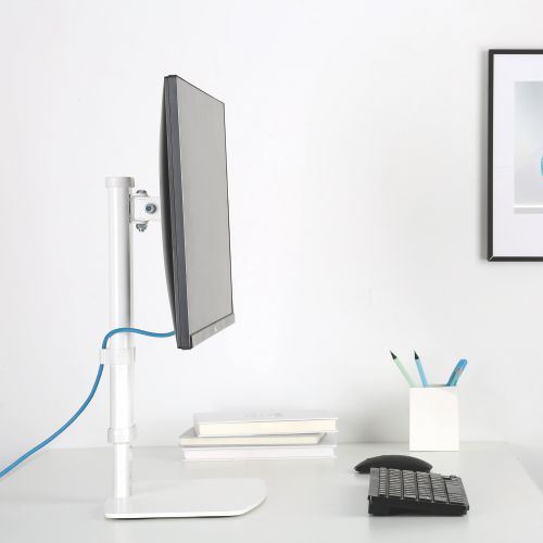 Questo supporto permette di ottimizzare lo spazio disponibile sulla scrivania e garantisce una migliore ergonomia. Prodotto solido con una base molto stabile, i cuscinetti in silicone antiscivolo proteggono il piano di lavoro da graffi. Rappresenta una soluzione semplice ma robusta che aiuta a posizionare il monitor in modo ergonomico e confortevole, in modo da non dover affaticare il collo o piegare la schiena mentre si lavora per lunghe ore alla scrivania. La robusta struttura in metallo e la solida base offrono un montaggio rapido, facile e sicuro su scrivania o su una qualsiasi superficie orizzontale. Pronto per l’installazione con hardware incluso, non è necessario praticare fori nelle scrivanie o nei ripiani.Caratteristiche• Supporto da tavolo per monitor da 17 ‘a 27’• Carico supportato: 6 kg• Compatibile VESA: 75×75,100×100• Il design della piastra VESA rimovibile consente una facile installazione• 10 impostazioni d’altezza per regolare una visualizzazione ottimale• La gestione dei cavi mantiene tutto organizzato• I cuscinetti in silicone antiscivolo proteggono il piano di lavoro da graffi• Colore biancoSpecifiche• Installazione: da tavolo• Inclinazione: +60° / -20°• Inclinazione orizzontale: +/- 30°• Rotazione schermo: +/- 180° • Altezza del monitor regolabile da 360 mm a 540 mm• Con sistema di gestione dei cavi integrato• Dimensione della base: 320 x 200 mmContenuto della confezione• Supporto da tavolo per monitor• Hardware e manuale di istruzioni