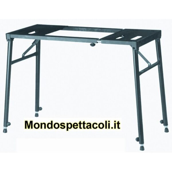 Supporto in acciaio solido, affidabile e completamente regolabile in altezza e larghezza. Progettato per sorreggere tastiere, pianoforti digitali ma comodo anche per mixer audio/luci. Ideale in studio e in concerto.