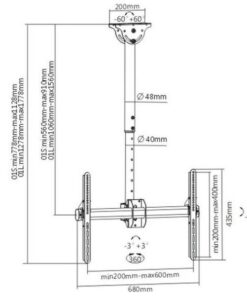 • ICA-CPLB 946S è una staffa telescopica da soffitto full-motion progettata per offrire il massimo in termini di versatilità e di compatibilità universale• Piastra inclinabile per applicazioni a soffitto piano e a spiovente• Consente agli schermi di essere inclinati verso il basso o ruotati senza attrezzi• Include piastra VESA per qualsiasi TV LCD 37′- 70′ o monitor fino a 50 kg• Regolabile in altezza per un perfetto posizionamento TV • Una canala di gestione dei cavi mantiene i cavi nascosti ed organizzatiCaratteristiche• Braccio adatto per TV LED LCD 37-70’• Supporta VESA max 600 x 400 mm • Standard VESA: 200 x 200, 400 x 200, 300 x 300, 400 x 400, 600 x 400• Massimo peso supportato: 50 kgSpecifiche• Inclinazione da 0° a -25°• Orientamento orizzontale: 360°• Con gestione cavi• Con pannello separato• Dimensioni: 680 x 435 x 1128 mm• Materiale: acciaio• Colore: neroContenuto della confezione• Supporto a soffitto per TV LED LCD• Accessori di fissaggio (viti, tasselli…) e istruzioni per l’installazione