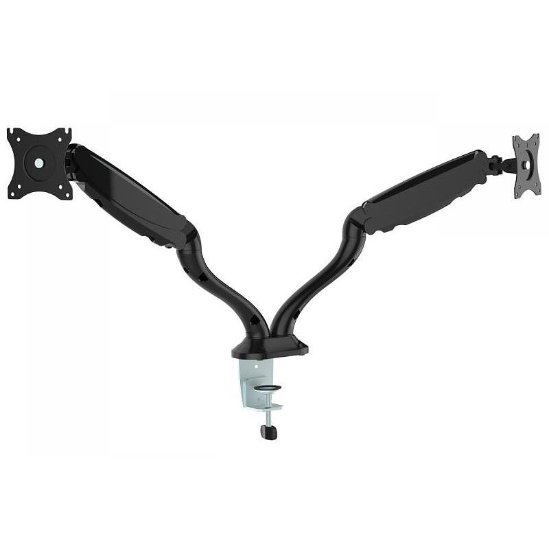 Supporto universale da scrivania per due monitor fino a 27” con porta tastiera e molla a gas