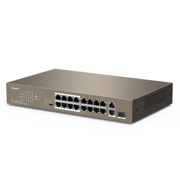 · Switch dotato di 16 porte 10/100Base-TX (Dati/Alimentazione), 1 porta 10/100/1000 Base-T (Dati), 1 porta 1000 Base-X SFP
