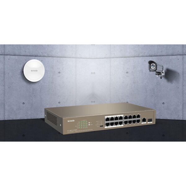 Switch con 16 porte PoE 10/100Mbps + 1 Gigabit/SFP Slot