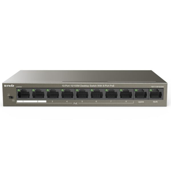 I-SWHUB TEF1110P8 è uno switch PoE non gestito con 2 porte uplink, progettato indipendentemente da Tenda.