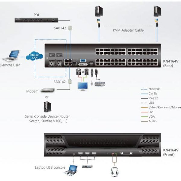 La 4ª generazione di switch KVM Over IP di Aten supera tutte le aspettative. KN4164V offre qualità video superiore (risoluzione Full HD di 1920 x 1200), FIPS 140-2 con standard di protezione di livello 1 e trasmissioni Virtual Media al doppio della velocità. La serie KN consente agli operatori l’accesso locale alla console e l’accesso remoto tramite IP in modo da monitorare e accedere all’intero data center tramite una rete. Offre inoltre l’accesso out-of-band con un modem esterno per la risoluzione dei problemi a livello di BIOS in caso di assenza di rete.Nuova esclusiva serie KN:• Processore grafico FPGA avanzato – con risoluzione Full HD 1920 x 1200• Elevata velocità Virtual Media – velocità di trasmissione Virtual Media 2 volte più veloce• Protezione di alta qualità – supporta FIPS 140-2 con standard di protezione di livello 1Con doppio NIC integrato e due alimentatori, la serie KN è stata progettata per assicurare l’affidabilità e garantire la disponibilità 24/7 di accesso remoto a tutti i server.I dispositivi della serie KN possono essere integrati nel software di gestione CC2000. Il CC2000 garantisce agli amministratori il controllo completo dei data center remoti e delle filiali, indipendentemente dalla loro ubicazione in tutto il mondo. Ciò consente agli amministratori IT di monitorare e controllare da remoto tutti i dispositivi in rete, inclusi i blade server e le macchine virtuali.Per consentire di gestire e controllare un intero data center, gli switch KVM over IP di ATEN supportano i server e i case Blade. Grazie alle nuove potenti funzioni come l’associazione dell’alimentazione, è possibile associare le porte KVM con le prese di alimentazione delle PDU ATEN per gestire l’alimentazione dei server direttamente dall’interfaccia degli switch KVM over IP.Ulteriori funzioni esclusive degli switch KVM over IP di ATEN includono: una bacheca dei messaggi, la modalità Panel Array™, Mouse DynaSync™ e Adapter ID.Con gli switch KVM over IP di ATEN, gli amministratori IT possono gestire i data center praticamente da ovunque, riducendo i costi di trasporto e il tempo medio di riparazione, garantendo così la massima disponibilità possibile dei data center.Caratteristiche• Nuova esclusiva serie KN- Processore grafico FPGA avanzato – con risoluzione Full HD 1920 x 1200- Elevata velocità Virtual Media – velocità di trasmissione Virtual Media 2 volte più veloce- Protezione di alta qualità – supporta FIPS 140-2 con standard di protezione di livello 1- Condivisione simultanea di una console locale e quattro/otto collegamenti indipendenti ai server collegati• Hardware- Densità porta elevata – connettori RJ-45 e cavo Cat 5e/6 fino a 64 porte in un alloggiamento 2U- Laptop USB Console (LUC) – Una porta USB dedicata si collega direttamente ad un laptop per un facile funzionamento della console- Quattro o otto bus separati per accesso KVM over IP- Due NIC 10/100/1000 Mbps per LAN ridondante o due operazioni IP- Supporto server Blade- Supporta connettività PS/2, USB, Sun Legacy (13W3) e seriale (RS-232)- La console locale fornisce supporto per tastiera e mouse USB- Supporta ambienti server a più piattaforma: Dispositivi seriali su base Windows, Mac, Sun, Linux e VT100- Audio abilitato- Doppia alimentazione- Risoluzione video elevata – fino a 1920 x 1200 a 60 Hz – profondità di colore a 24 bit per console locale fino a 50 m e 24 bit per sessioni remote- Monitoraggio e controllo fino a 64 computer su un singolo livello o controllo fino a 512 computer a cascata*- Gli switch KVM compatibili per il collegamento a cascata sono: CS9134, CS9138, CS88A, KH1508, KH1516, KH1508A e KH1516A• Gestione- Fino a 64 account utente: fino a 32 accessi contemporanei con controllo condiviso- IT econologi: la velocità delle ventole varia a seconda della temperatura- Supporto per server di log Windows e registrazione degli eventi- Notifica di eventi di sistema critici via email SMTP, trap SNMP e supporto syslog- Notifica eventi personalizzabile- Firmware aggiornabile- Supporto Out-of-Band Access-Modem dial-in/dial out/dial back- Funzione Adapter ID: La memorizzazione delle informazioni delle porte consente agli amministratori di riassegnare i server a porte diverse senza dover riconfigurare gli adattatori e gli switch- La modalità di condivisione delle porte consente a più utenti contemporaneamente di ottenere l’accesso al server- Integrazione con il software di gestione ATEN CC2000 e il software per la registrazione di sessioni video CCVSR- L’associazione dell’alimentazione con le PDU ATEN consente di associare le porte KVM dello switch con le prese delle PDU per la gestione remota dell’alimentazione- Compatibile IPv6• Interfaccia di facile utilizzo- Esclusiva modalità Panel Array ATEN™ per il monitoraggio simultaneo da parte degli operatori della console locale e degli utenti con accesso remoto- Le interfacce della console locale, quella basata su browser e AP offrono un’interfaccia unificata multilingue per ridurre i tempi di apprendimento e aumentare la produttività- Supporto client multipiattaforma (Windows, Mac OS X, Linux, Sun)- Supporto multibrowser: Internet Explorer, Chrome, Firefox, Safari, Opera, Mozilla, Netscape- L’interfaccia basata su browser consente agli amministratori di eseguire i loro compiti senza il bisogno di pacchetti software Java preinstallati- Gli utenti possono avviare varie sessioni di desktop remoto per controllare diversi server con lo stesso login- Desktop remoto virtuale a tutto schermo oppure ridimensionabile e scalabile- Trasmissione tastiera/mouse: possibilità di replicare l’input da mouse e tastiera su tutti i server collegati- Sincronizzazione video con la console locale: le informazioni EDID del monitor della console locale sono memorizzate sui cavi adattatori KVM per ottimizzare la risoluzione video• Protezione avanzata- Supporto autenticazione da remoto: RADIUS, LDAP, LDAPS e MS Act