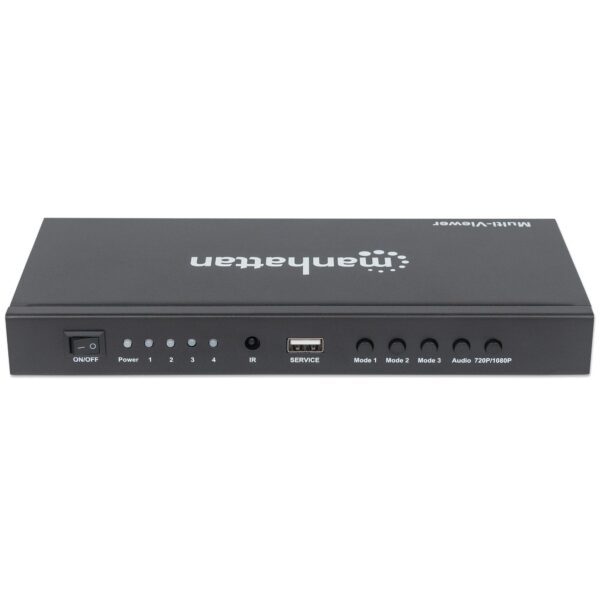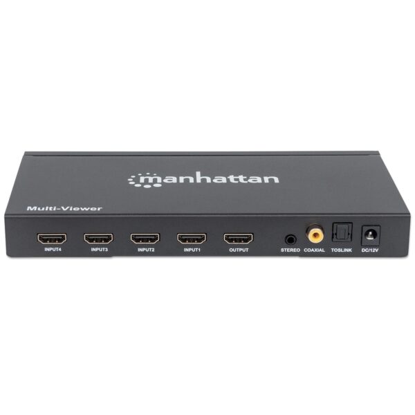 • Condivide fino a quattro sorgenti audio/video HDMI su un unico schermo contemporaneamente o uno alla volta• La funzione multiviewer supporta quattro modalità personalizzabili: schermo intero e tre varianti della Modalità Combo con commutazione continua tra le sorgenti• Supporta risoluzione 1080p, video HD 3D e Deep Color (36-bit/pixel)• Amplificatore di banda video integrato• Supporta LPCM, DTS Digital, DTS-HD Master Audio e audio Dolby TrueHD• Supporta uscita audio Stereo, Coassiale e Toslink per il collegamento ad un amplificatore o ricevitore per una qualità ottimale del suono• Commutazione tra le sorgenti tramite telecomando o in modo manuale tramite un tasto sull’apparecchio• Soluzione audio/video flessibile per sale conferenze (per condividere idee e dati), segnaletica digitale (riduzione dello spazio e dei costi per più schermi), sicurezza e altre applicazioni• Funziona con console di gioco come PlayStation e Xbox, lettori Blu-ray, ricevitori digitale terrestre e ricevitori satellitari e molto altro• Compatibile Full HDCP• Alimentato AC con installazione Plug and Play; non richiede configurazioni speciali• Installazione plug-and-play• Contatti dorati per una lunga durata nel tempoInformazioni generali• Distanza sorgente-switch: fino a 15 m• Distanza switch-schermo: fino a 15 m• Lo switching senza interruzioni è supportato quando le risoluzioni delle sorgenti sono le stesse (quando le fonti hanno risoluzioni diverse si verifica un ritardo di tre secondi)• Alimentazione: 12 VDC @ 2 A ; alimentatore AC, 0.9 mConnessioni• Una connessione HDMI femmina, 19-pin (uscita)• Quattro connessioni HDMI femmina, 19-pin (ingresso)• Una connessione audio stereo femmina, 3.5 mm (uscita)• Una connessione coassiale femmina, S/PDIF (uscita)• Una connessione Toslink femmina (uscita)• Una connessione USB, Mini-B (ingresso) solo per usi di fabbrica• Una connessione di alimentazione 12 VDC femmina, OD 5.5 mm / ID 2.1 mm (ingresso)Segnale entrata/uscita• Segnale video in entrata: 400 – 600 mV• Segnale DDC in entrata: 5V p-p (TTL)• Massimo single-link range: 2.25 Gbps e risoluzione 1080p• Uscita video: HDMI 1.3, HDCP 1.4a• Frequenza: 2.25 Gbps / 225 MHzRisoluzioni Video• DTV/HDTV: 480i/480p/576i/576p/720p/1080i/1080pInformazioni fisiche• Indicatori LED di alimentazione e di connessione• Alimentatore: 12 VDC / 2 A; 0.9 m• Interruttore• Dimensioni: 213 x 100 x 25 mm• Peso: 0.46 kg• Alloggiamento: metalloStandard e Certificazioni• HDMI 1.3• HDCP 1.4a• CE• FCC• RoHS2Caratteristiche ambientali• Temperatura operativa: 0 – 40°C• Temperatura di stoccaggio: -20 – 60°C• Umidità (senza condensa): 0 – 96%Contenuto della confezione• Switch Multiviewer HDMI 4 porte 1080p• Telecomando• Alimentatore• Manuale utente