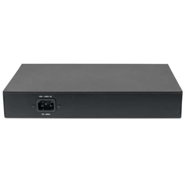 • Fornisce alimentazione e connessione dati per quattro periferiche di rete PoE• Risparmia tempo e denaro, fornendo dati e alimentazione tramite una rete cablata esistente• Per uso desktop o installato a rack standard da 19’• Porte 10/100 auto-sensing rilevano automaticamente la velocità di rete ottimale• 4 porte di uscita RJ45 PoE/PoE+ compatibili IEEE 802.3at/af• Budget di potenza PoE di 70 watts• Supporta periferiche compatibili IEEE 802.3at e IEEE 802.3af (access point wireless, telefoni VoIP, IP Camera)• Supporta rilevamento IEEE 802.3at/af e corto circuito, protezione contro sovracarico e alto voltaggio• Conforme con le specifiche IEEE 802.3az (Energy Efficient Ethernet EEE)• Tutte le porte RJ45 supportano Auto-MDIX (auto uplink)• Architettura store and forward switching• IEEE 802.3x controllo di flusso per la modalità full duplex• Supporta fino a 2K MAC address in entrata• 768 kBytes di buffer di memoria• Involucro in metallo da scrivania• Include staffe per fissaggio a rack 19’Standard• IEEE 802.3 (10Base-T Ethernet)• IEEE 802.3af (Power over Ethernet 802.3at Type 1)• IEEE 802.3at (Power over Ethernet 802.3at Type 2)• IEEE 802.3az (Energy Efficient Ethernet EEE)• IEEE 802.3u (100Base-TX Fast Ethernet)• IEEE 802.3x (controllo di flusso, per modalità full duplex)Informazioni generali• Supporta:- 10Base-T Cat3, 4, 5 UTP/STP RJ45- 100Base-TX Cat5 UTP/STP RJ45• Pacchetto tasso filtro/inoltro:- 148,800 pps (100 Mbps)- 14,880 pps (10 Mbps)• Tabella MAC address: 2K in entrata• Buffer di memoria: 768 kBytes• Velocità Backplane: 1.6 Gbps• Architettura switch: store and forwardLED• PoE• Accensione• Attività/connessioneAccensione• Consumo: 20 watts (massimo)• Consumo di potenza: 80 watts (massimo)Informazioni fisiche• Chassis in metallo• Dimensioni: 280 (L) x 179 (P) x 44 (A) mm• Peso: 1.5 kg• Temperatura d’esercizio: 0 – 40°C• Umidità di esercizio: 10 – 90% senza condensa• Temperatura di stoccaggio: -10 – 70°CCertificazioni• CE• FCC classe A• RoHS• RAEEContenuto della confezione• Switch a 8 porte Fast Ethernet PoE• Cavo di alimentazione• Manuale d’istruzione• Staffe per montaggio a rack 19′