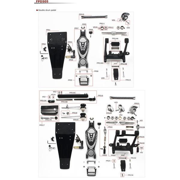 Doppio Pedale batteria con doppia catena, braccio di rinforzo e pedana stabilizzatrice FPD505 serie Octopus