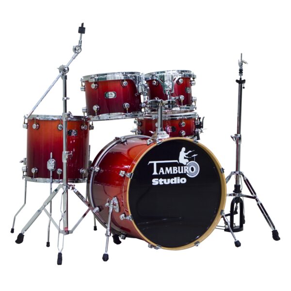 Studio drumkit in betulla – Configurazione Standard – Bass Drum 22″x 18″ – Floor Tom 14″x 14″ – Tom Tom  10″x 8″  12″x9″ – Snare Drum 14″x 5,5 – Colore Orange