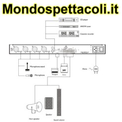 Dispone di 4 ingressi Mic/Line con connettore XLR combo con alimentazione phantom e priority su MIC1