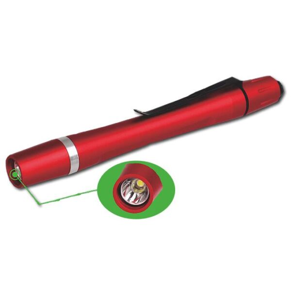 • Torcia LED Cree XP-E R3 compatta e versatile • Luminosità: 100 lumen• Grazie al design che riproduce una penna con clip metallico e alle dimensioni ridotte, risulta ideale da portare sempre in tasca per situazioni di emergenza • Massima emissione luminosa e fascio ottimizzato, permette di illuminare perfettamente zone piccole e circoscritte• Tasto di accensione/spegnimento per un utilizzo più lungo; testata fino a 60.000 attivazioni• Struttura in alluminio, resistente all’acqua • Alimentazione: 2 batterie ministilo AA (LR03) incluse• Dimensioni: 141 mm x 16 mm (diametro)• Colore: rosso
