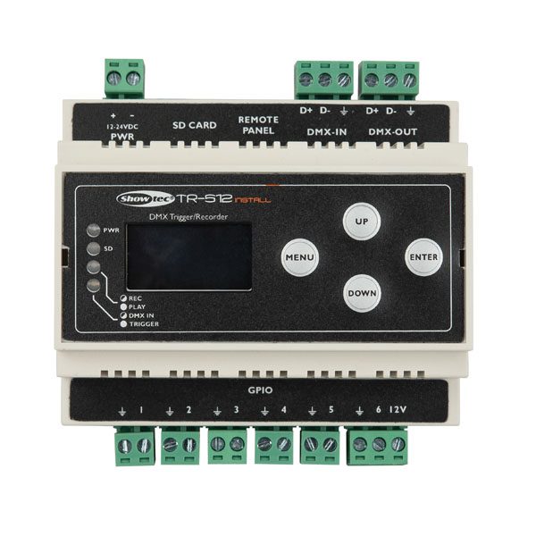 L’unità TR-512 Install è in grado di registrare e riprodurre diversi spettacoli che possono essere memorizzati sulla scheda micro-SD inclusa. Ogni show può essere riprodotto in modalità loop o riproduzione singola. Anche un auto start all’accensione o un avvio ritardato possono essere impostati in modo da avere un controllo preciso sul vostro show.
