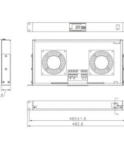 • Unità Ventole per Server Rack Professional Caratteristiche ventole: • Struttura in fusione di alluminio verniciata a polvere nero RAL 9005• Girante in fibra di vetro rinforzata autoestinguente UL 94V-O• Rotazione su bronzina• Portata: 150 m3 cad. ventola• Temperatura di esercizio: -10°C + 60°C• Griglia cromata di protezione• Livello di rumorosità: 43 dbA• Assorbimento: 23W cad. ventola• Alimentazione: 230V – 50HzCaratteristiche termostato:• Campo di regolazione: -10°C a + 80°C• Grado di protezione: IP 20• Connessione elettrica: 2 terminali a vite per conduttori da 0,75 mm2 a 2,5 mm2• Tolleranza: +/- 3°KCaratteristiche contenitore:• Lamiera di acciaio spessore 1,5 mm• Colori RAL 9005 goffrato• Cavo di alimentazione 3×1 mm2 – lunghezza 2,5 mtCaratteristiche tetto:• Lamiera di acciaio spessore 1,5 mm• Colori RAL 9005 goffrato Dimensioni (LxPxA):• 380 x 1125 x 80 mm