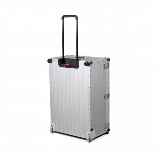 Valigia trolley in alluminio preverniciato con bordi squadrati rivestita internamente in polietilene espanso spessore 8mm.