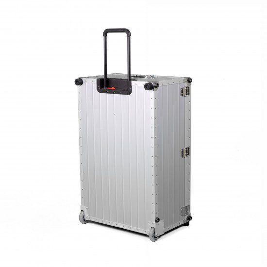 Valigia trolley in alluminio preverniciato con bordi squadrati rivestita internamente in polietilene espanso spessore 8mm.