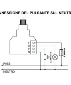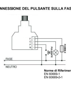 · Il dispositivo è azionabile tramite potenziometro (encoder) con pulsante incorporato ed uno o più pulsanti normalmente aperti (NA,) con collegamento indifferentemente sulla fase (F) o sul neutro (N)