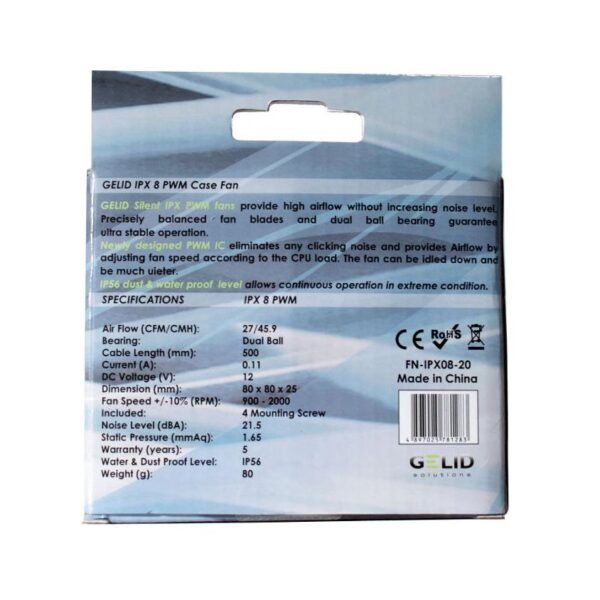 La serie di ventole industriali IPX fornisce protezione contro i depositi dannosi di polvere e acqua in ambienti difficili. È classificato IP56 e consente il funzionamento continuo in condizioni estreme e in ambienti industriali ad alta umidità.Sono dotate di ventolina bilanciata con precisione che garantisce un funzionamento stabile anche alle più alte velocità di rotazione possibili. Integrano anche una meccanica ultraresistente, una doppia configurazione con cuscinetti a sfera del rinomato produttore giapponese NMB Tech. Il nuovo Smart PWM IC, progettato appositamente per la serie di ventole industriali IPX, elimina qualsiasi rumore e controlla la velocità della ventola in base al carico della fonte di calore. Queste ventole hanno blade ampiamente ottimizzati, il risultato di simulazioni software e test di prototipi reali che offrono prestazioni più elevate e una distribuzione del flusso d’aria notevolmente migliorata senza aumentare il livello di rumore.Caratteristiche• Cuscinetto Dual Ball Bearing• Controllo PWM• Funzionamento silenzioso• Alta portata d’aria• Dimensioni: 80 x 80 x 25 mm• Lunghezza del cavo: 500 mm• Velocità della ventola (RPM): 900 – 4200• Livello di rumorosità (dBA): 19.2• Pressione statica (mm H2O): 2.0• Connettore: 4 pin PWM• Grado di protezione IP56• Corrente (A): 0.04• Tensione DC (V): 12• Colore: neroCertificazioni• CE• RoHS• RAEEContenuto della confezione• Ventolina silent ICPU-GE-IPX8PW• 4 viti di fissaggio