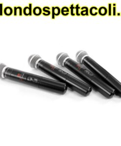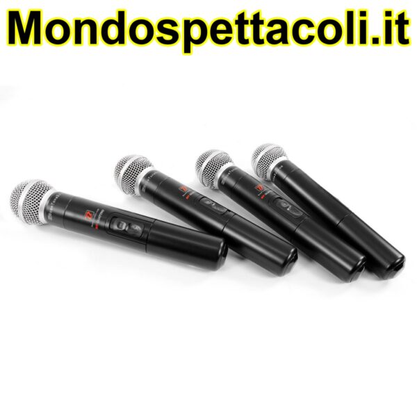 4 microfoni HF palmari BoomToneDJ VHF Quattro M GR3, portata di 80 metri, interruttori ON/OFF sui microfoni, uscite XLR, ideali per karaoke, discoteche mobili…