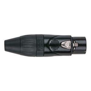 Questo connettore per telaio XLR impermeabile e a tenuta ermetica a 5 pin presenta una piastra anteriore in metallo presso fuso con zinco e un alloggiamento in poliammide, adatto a fori di montaggio di misura D. È dotato di contatti placcati oro ed è fornito con un cappuccio protettivo e una guarnizione a tenuta, grazie ai quali è classificato IP65 ed è idoneo per l’uso in condizioni bagnate. Deve essere installato dalla parte anteriore del pannello.