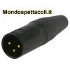 Cannon maschio volante 3 poli, professionale. Corpo totalmente in metallo e pinza stringicavo. Molla guidacavo.