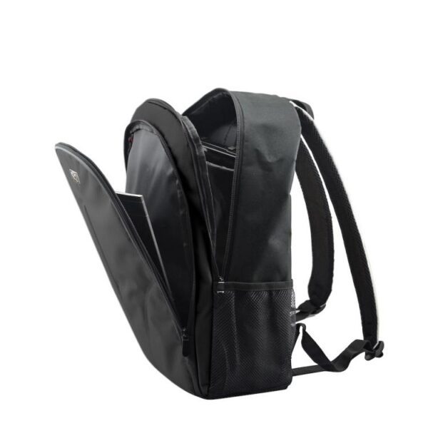 • Zaino realizzato in resistente Nylon 600D e poliestere• Comode spallacci regolabili e imbottiti con materiale in rete e pratica maniglia superiore • Tasca principale con unico accesso tramite ampia cerniera e spazioso scomparto interno riservato all’alloggiamento del computer• Ulteriore ampia tasca frontale con cerniera per riporre documenti e altri oggetti• Tasche laterali in rete per trasportare bottiglie di acqua o altri oggetti• Dimensioni esterne: 430 mm x 330 mm x 120 mm (*)• Colore: nero * Verificare sempre le dimensioni esterne del notebook per determinare la compatibilità. Tutte le dimensioni della borsa sono approssimative e potrebbero variare leggermente.