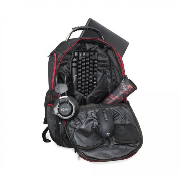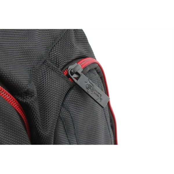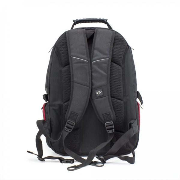 Zaino per notebook 17,3′ Nero/Rosso per custodire e trasportare notebook fino a 17,3′. Dotato di tasche aggiuntive per contenere altri accessori, come per esempio tastiera, mouse etc. Realizzato in poliestere 1680D impermeabile all’acqua – waterproof. Dimensioni: 370mm x 510mm x 180mm – Colore: Nero/Rosso.