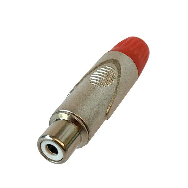 Connettore RCA femmina nickelato con fermacavo color rosso