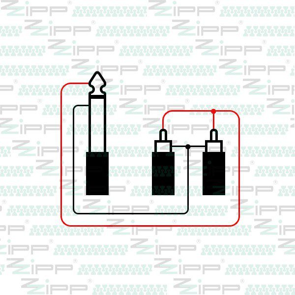 6.35 mm Jack MONO (TS) – 2 x RCA Maschio