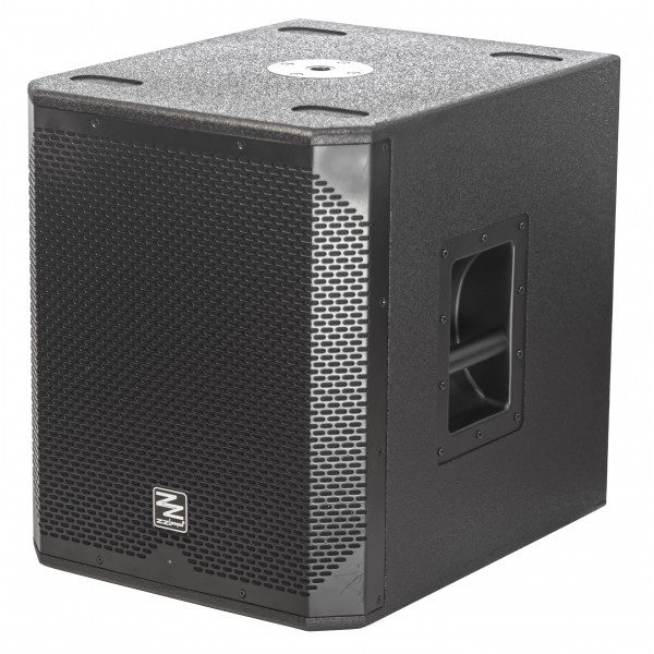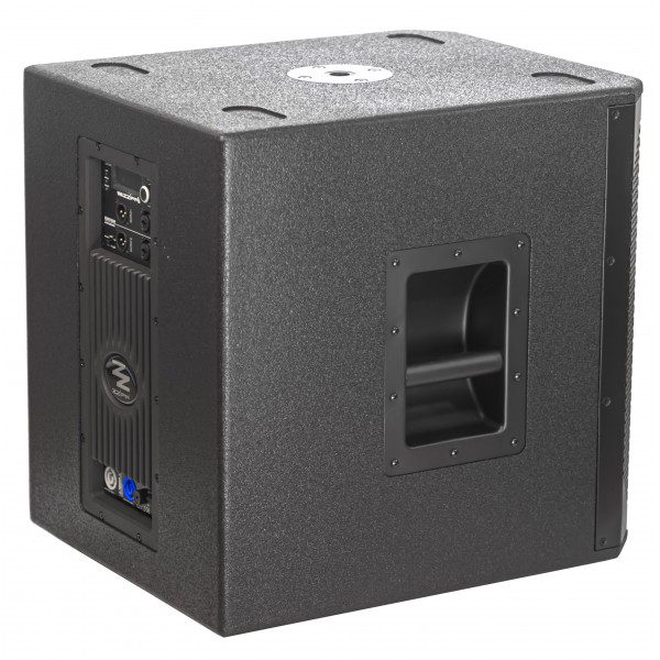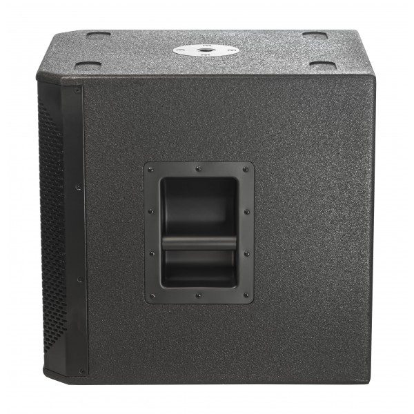 Subwoofer amplificato con case in legno multistrato ad alta densità.