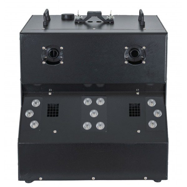 Macchina suggestiva e spettacolare genera una moltitudine di bolle che al loro scoppio rilasciano il fumo. Per rendere l’effetto ancora più spettacolare sono stati inseriti dei LED sulla parte frontale della macchina che illuminano il flusso di bolle, unica nel suo genere per uno spettacolo senza precedenti.