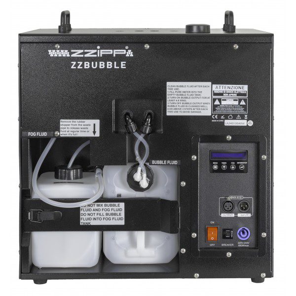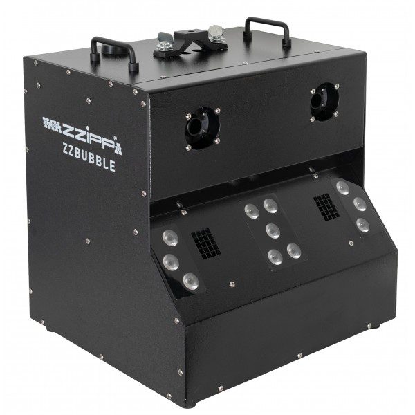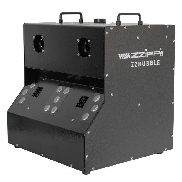 ZZBUBBLE genera delle bolle piene di fumo dall’effetto caratteristico. Il fluido in eccesso rifluisce nel contenitore e non sporca la zona nell’intorno della macchina. Grazie al suo innovativo serbatoio la macchina può essere installata anche in sospensione. La sua versatilità permette di utilizzarla per spettacoli, feste, concerti ed eventi.