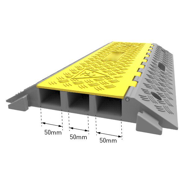 Canaline passacavo costruite in poliuretano e polietilene con bordi inclinati per attraversamento di ruote. Modulazione a coda di rondine per connessione stabile di più moduli. Ignifuga, isolante elettricamente e anticorrosione.