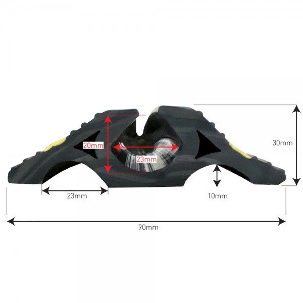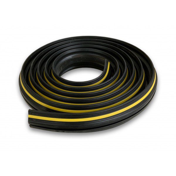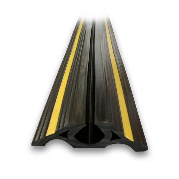 Canalina gialla e nera con portata massima 2 tonnellate, base in gomma antiscivolo struttura in PVC ignifugo accorciabile a piacimento tramite cutter.