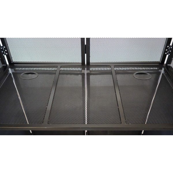 Robusto piano di appoggio 110 x 52cm con 2 fori gommati per il passaggio cavi.