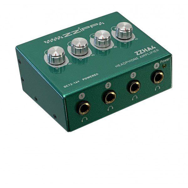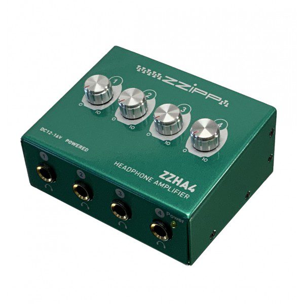Amplificatore per cuffia a 4 uscite con volume indipendente per ogni uscita.