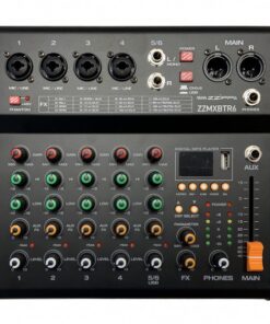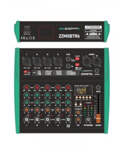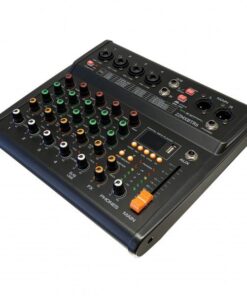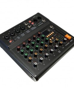 Mixer compatto con lettore mp3 integrato, connettività bluetooth e scheda audio.