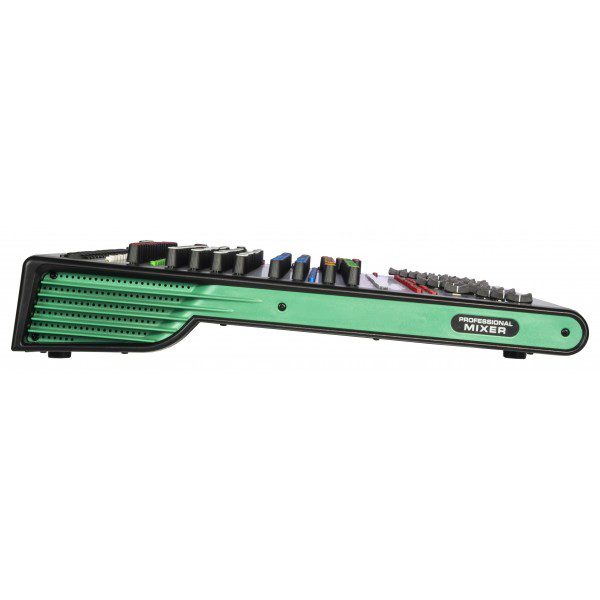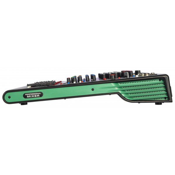 Mixer analogico compatto con DSP a 32 bit e scheda audio full duplex integrati, 99 effetti, connettività bluetooth e lettore multimediale. 4 gruppi di uscita ausiliari selezionabili indipendentemente, con selettore a matrice. Equalizzatore a 9 bande sul master. Alimentazione phantom +48V