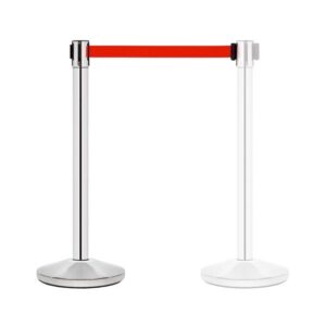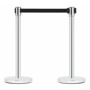 Barriera a nastro retrattile per uso interno, comoda robusta e facilmente trasportabile.