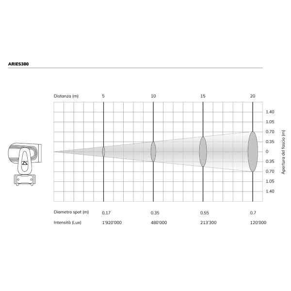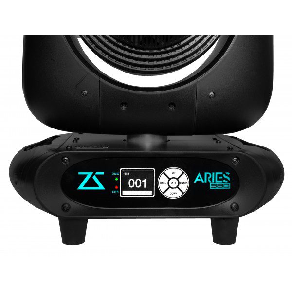 ARIES380 è una testa mobile con lampada a scarica da 311W compatta e veloce nei movimenti con una dotazione di serie esagerata, conta ben 4 prismi sovrapponibili. Ruota colori con 13 colori + open, ruota gobo con 13 gobo fissi, messa a fuoco motorizzata, filtro rainbow, doppio prisma circolare + lineare sulla ruota 1 e doppio prisma circolare da 20 e 24 facce sulla ruota 2 Per offrire una combinazione di effetti senza paragoni.