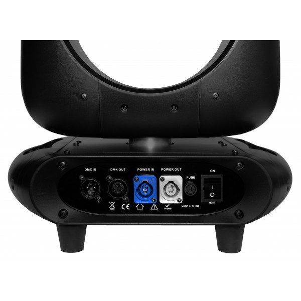 Faro motorizzato “Beam” con lampada a scarica da 311W, Zoom motorizzato e 4 prismi sovrapponibili.