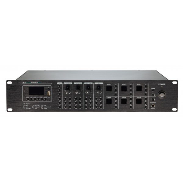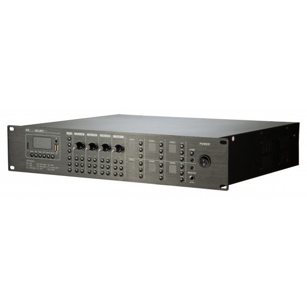Ampli/mixer a matrice 6 x 6 con lettore multimediale integrato, connettività bluetooth, alimentazione phantom, radio FM + DAB