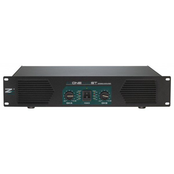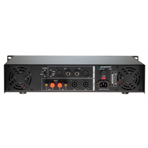 Amplificatore di potenza stereo a bassissima distorsione. Doppia ventola di raffreddamento per impieghi professionali